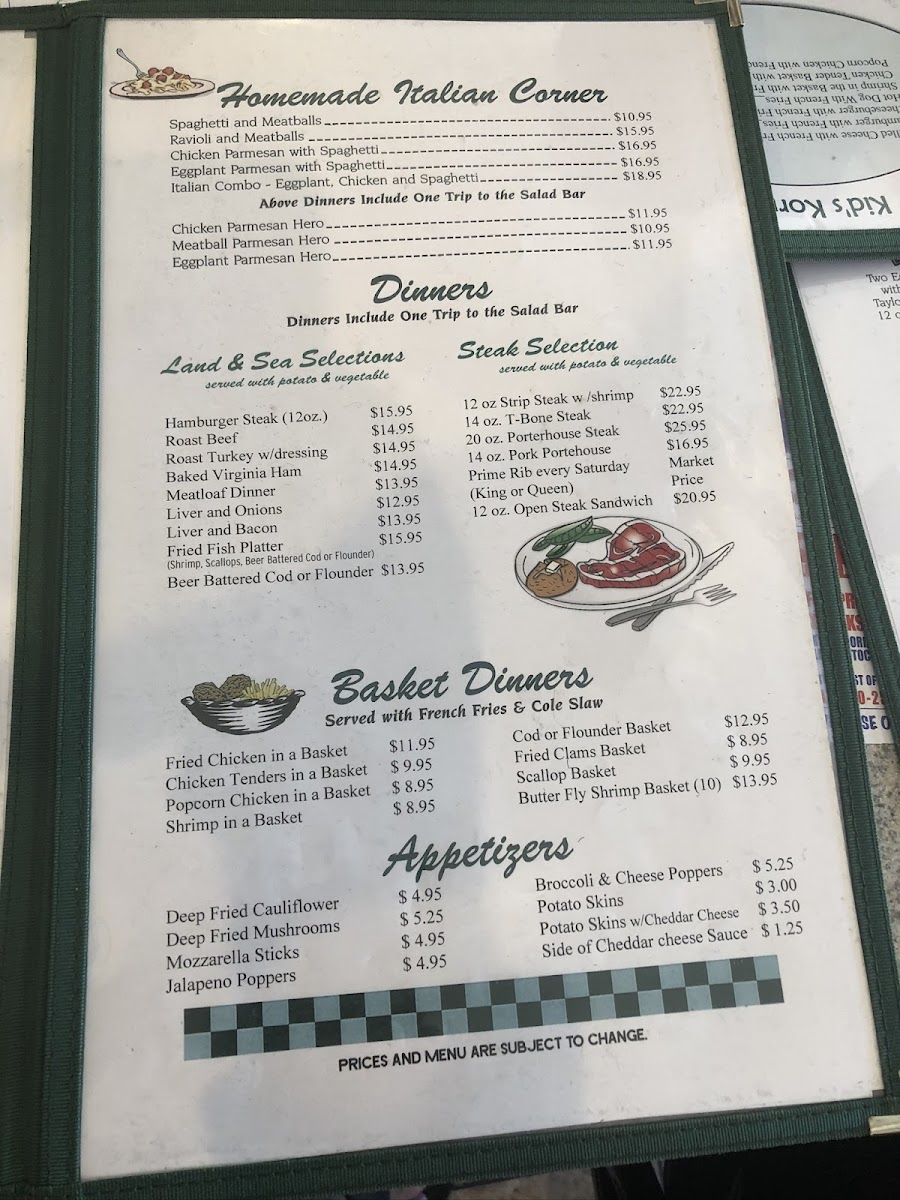 “ Family-operated serving wholesome food, including Italian dishes. In the rear room is a cute clock which on the hour chimes "Let It Be" by the Beatles. In the front section are booths and a countertop. Clean bathroom and parking for about eight cars. There are a table and chairs for dining al fresco. ”